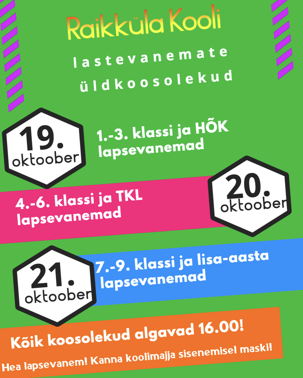 Sellel aastal viime lastevanemate üldkoosolekud läbi kooliastmete põhiselt.