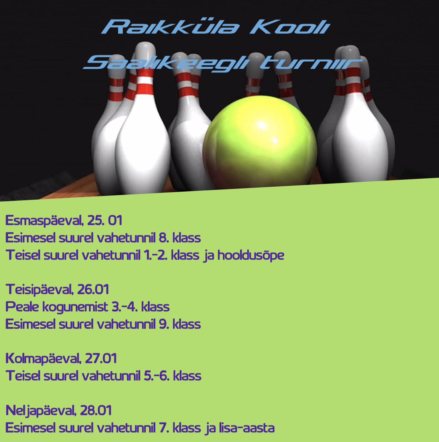 25.-28. jaanuarini toimub Raikküla Koolis I saalikeegli turniir. Ava foto Viimati muudetud 20.01.2021.