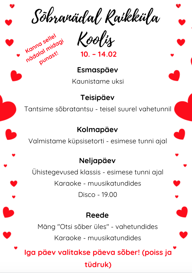 Sõbranädalal toimub iga päev majas mitmeid huvitavaid tegevusi. Jälgi reklaami! Ava foto Viimati muudetud 08.02.2020.